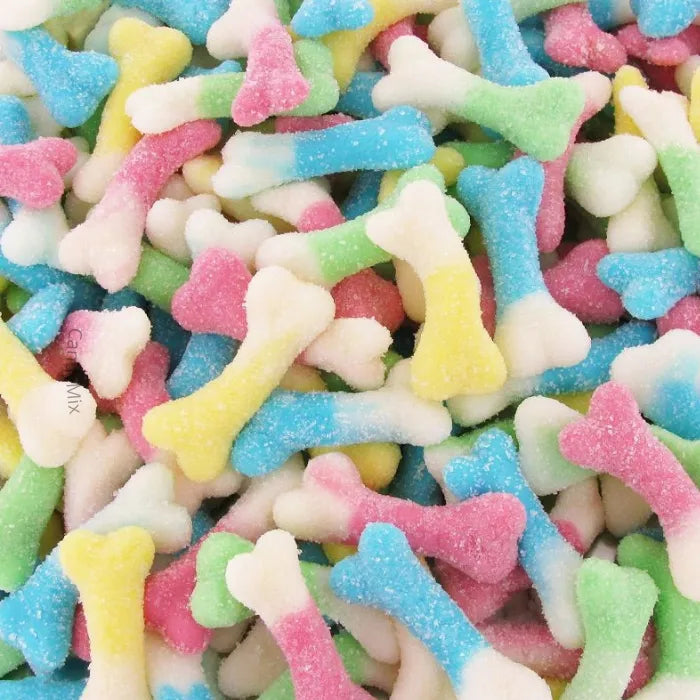 Ces Os Couleurs Acides apportent une touche fun et piquante à toutes vos fêtes. Leur texture moelleuse et leur enrobage acidulé réveillent les papilles, tandis que les couleurs vives subliment vos buffets de bonbons. À proposer en vrac, en sachet prêt à offrir ou à glisser dans une Box Mystère : succès garanti auprès des amateurs de sensations acidulées.